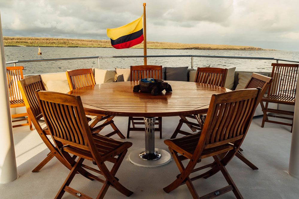 Due to the yacht's size, weight and stabilizers, seasickness is reduced. Guests can have a relaxed cruise to nearby islands and experience the magic of Galapagos.